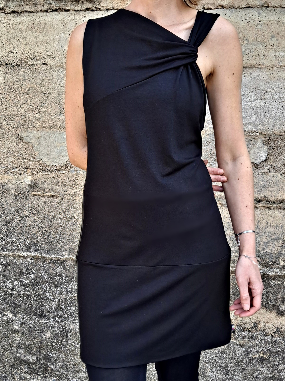 Mini vestit escot assimètric 96% viscosa 4% elastà