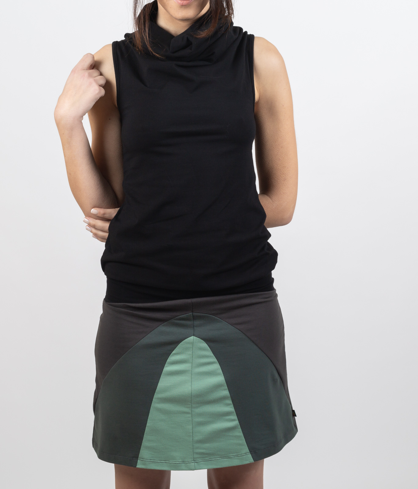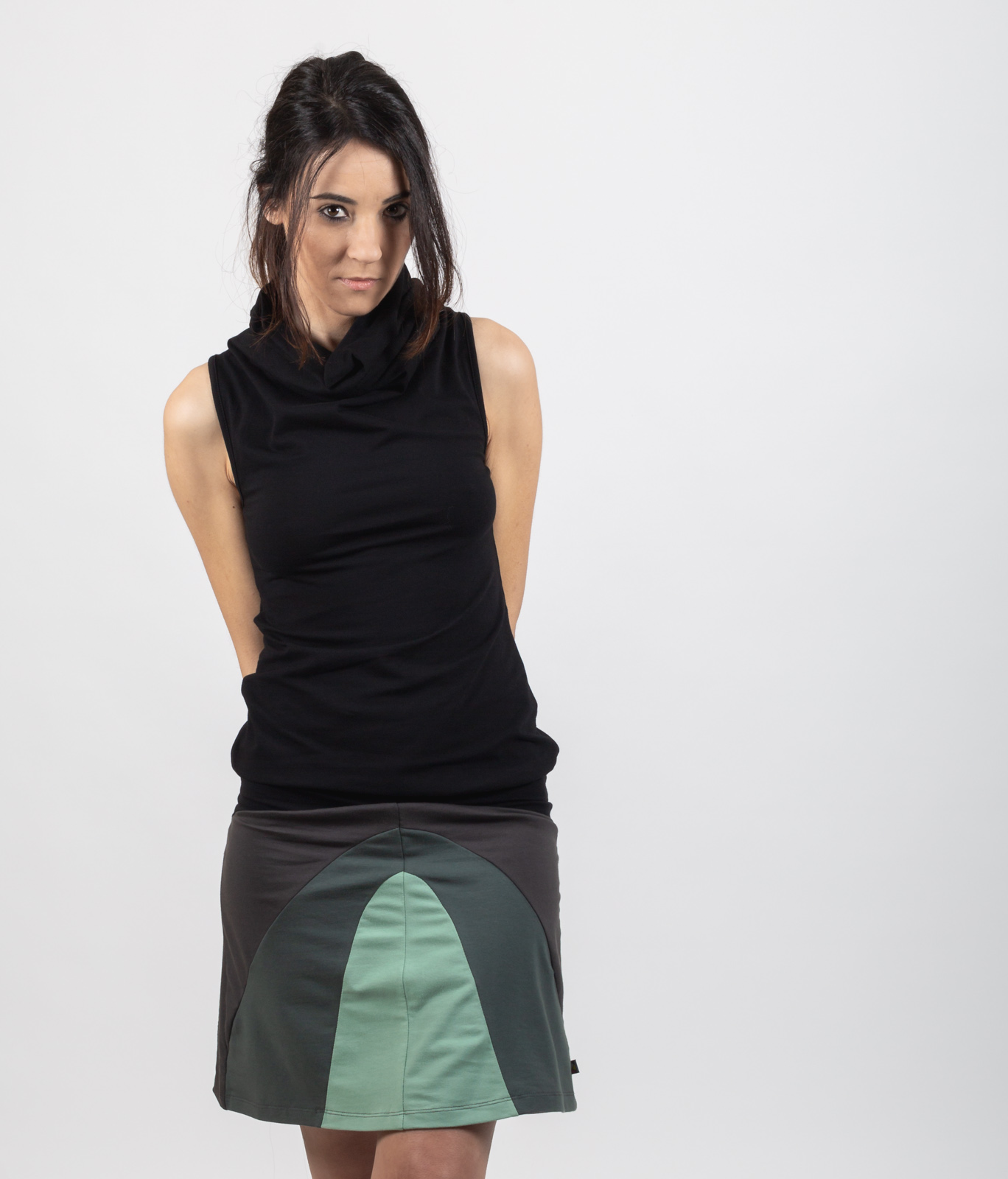 65,00 € 22,00 €Vestit negre...si!!!, però amb un toc de color. Aquest vestit està ple de contrasts, el cos negre vs faldilla a tope de color, escot elegant vs teixit còmode i informal, aconseguint que amb una sola peça de roba et vegis genial. Està confeccionat amb cotó elàstic.